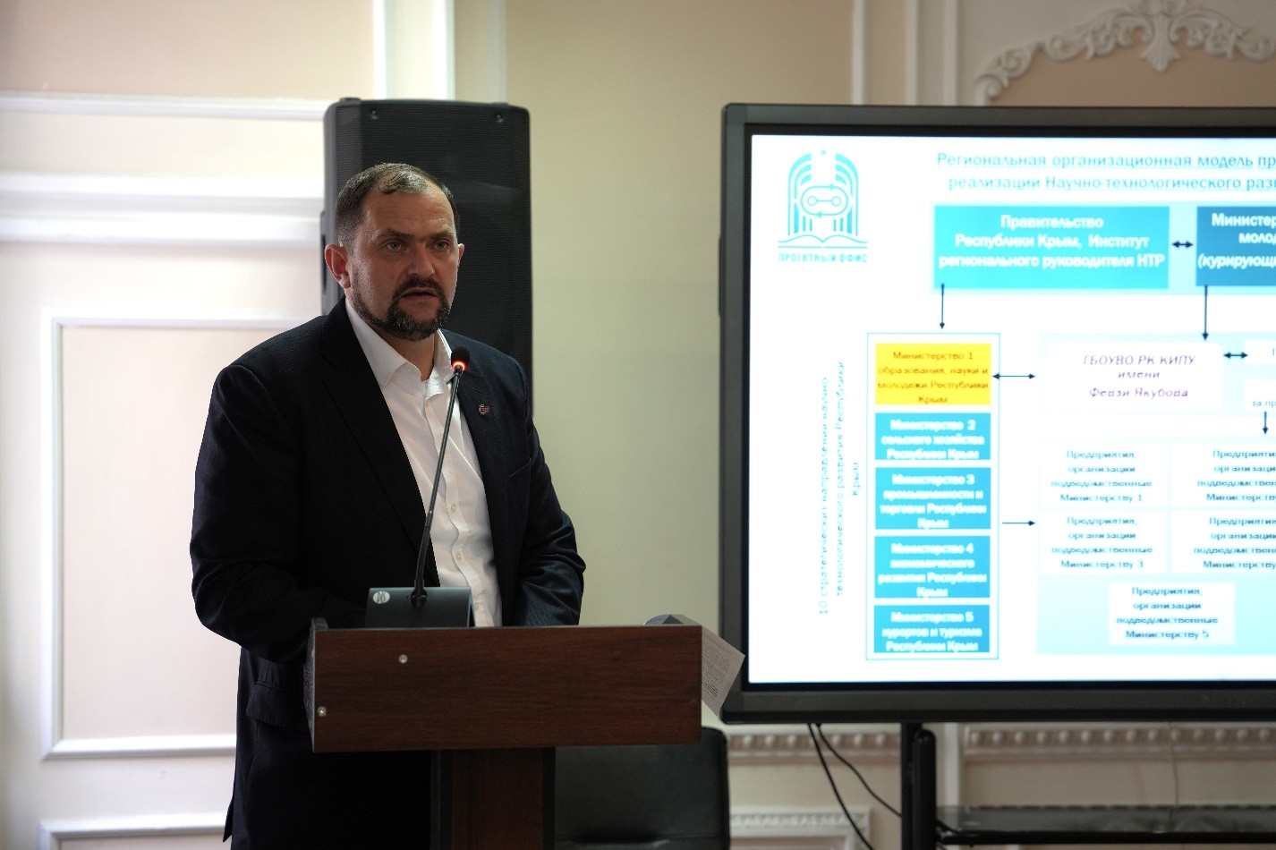 Михаил Спичка выступил с докладом на тему «Научно-производственный центр как драйвер технологической кооперации: практика взаимодействия с промышленностью», в рамках которого были представлены проекты «Переносной проточный водонагреватель автономного типа» и «Многофункциональная самоходная платформа с роботизированным комплексом». Правительство Республики Крым выразило готовность оказывать содействие в продвижении научных разработок и их практической реализации.