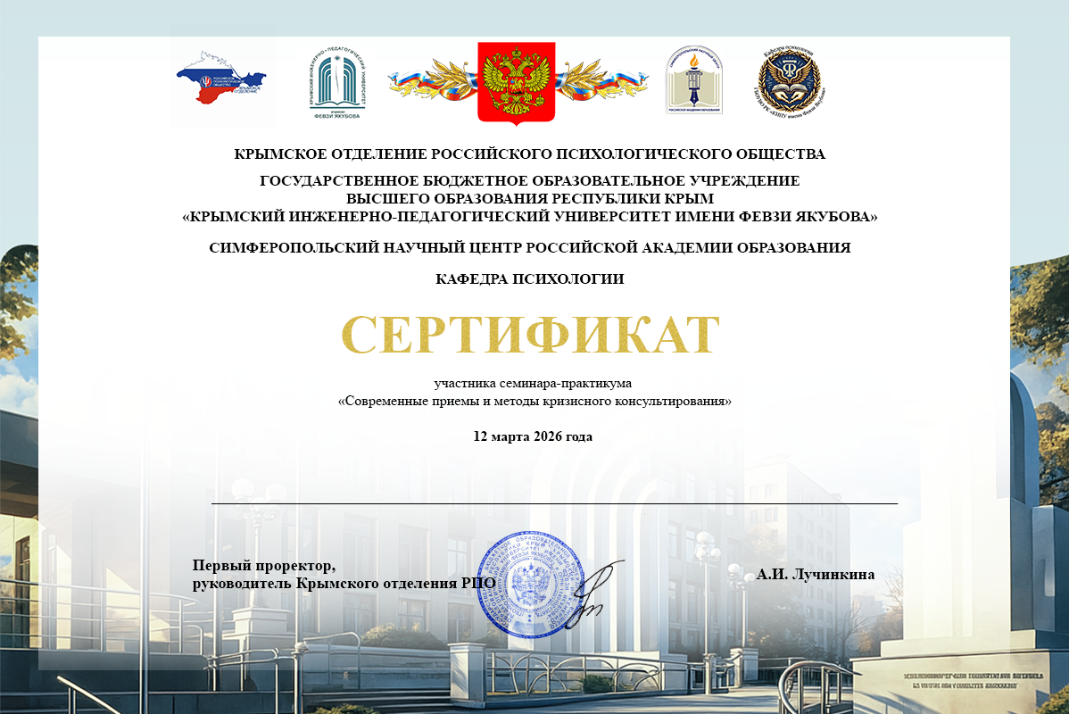 ГБОУВО РК «Крымский инженерно-педагогический университет имени Февзи Якубова» объявляет о старте Олимпиады для студентов, обучающихся по программам высшего образования по направлению 37.03.01 «Психология».
